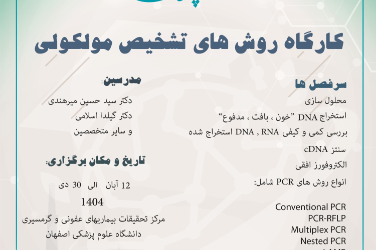کارگاه روش های تخصصی تشخیص آزمایشگاه به روش PCR و Real time PCR در مرکز تحقیقات بیماریهای عفونی و گرمسیری به صورت کاملا عملی از 12 آبان تا 30 دی ماه برگزار گردید.